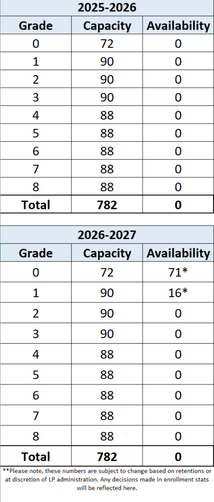 - The enrollment lottery was held on Friday, February 13th, 2026.