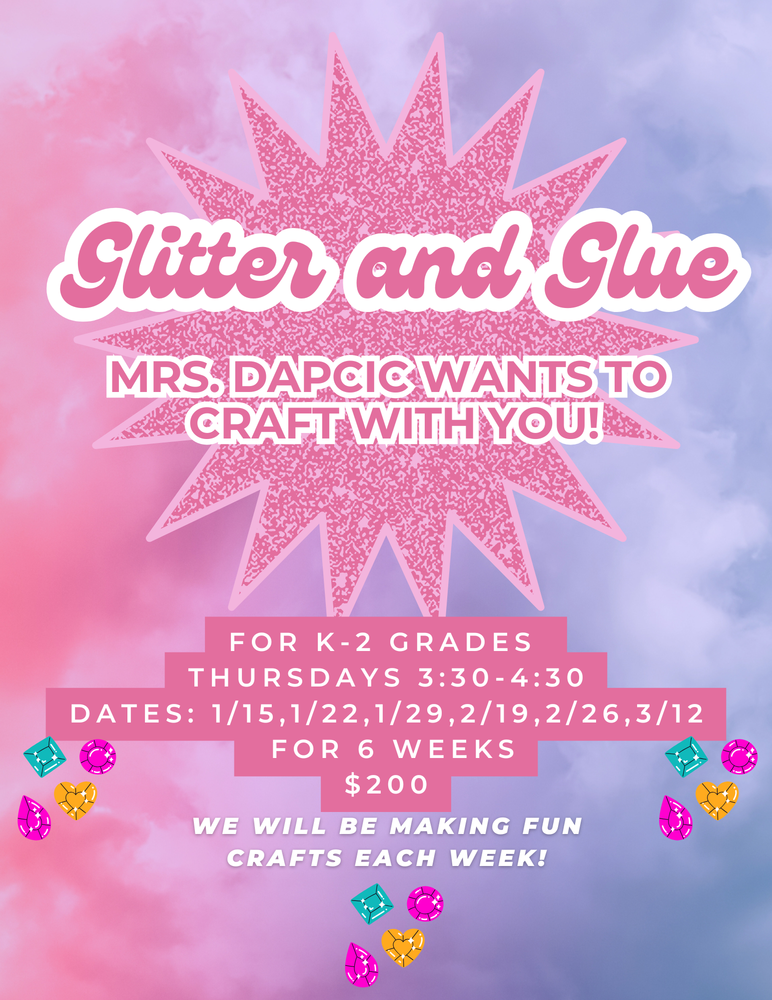 January 8, 2026Enrichment – Fun and Glitter Too with Dapcic Spring 2026 (KG-2nd grade)